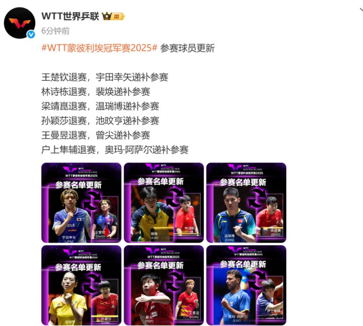 据WTT世界乒联消息配资公司官方网,WTT蒙彼利埃冠军赛2025参赛球员更新: